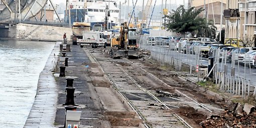 | Quai d’Orient, les anciens rails vont disparaître Des bornes (eau et électricité) sont installées. (V.A.) |