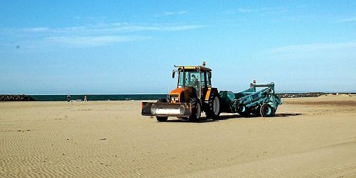 | Dès 5 heures du matin, les gros engins sont nécessaires pour nettoyer la plage. (© D.R) |