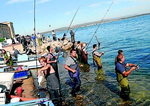 Avis de connaisseur recueilli hier dimanche à la Plagette. Une Plagette où, après un samedi relativement fructueux, le rythme des prises s'est quelque peu ralenti, hier. En prolongement de cannes équipées d'une ligne de 30 centièmes, d'une olive de 80 g, d'un bas de ligne de 30 et d'un hameçon « de 1, ou de 2 », on y dénombrait tout de même quelques dizaines de fidèles, certains immergés jusqu'aux cuisses, défiant du regard, et du lancer, ceux de la Pointe, en face.
