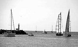 Le temps d'un petit-déjeuner réparateur au Centre nautique et voilà que les voiliers, mais aussi des bateaux à moteur, reprenaient le large pour prendre part à l'Odyssée rotarienne, dont on fêtait hier le dixième anniversaire. Un raid côtier rebaptisé pour l'occasion "24 heures rotariennes", ouvert à tous et dont le but est on ne peut plus ludique : trouver des bouteilles lancées à la mer, les repêcher et répondre aux questionnaires enfermés dedans. Un quizz sur la mer, cela va de soi... Là encore, la superbe météo a permis de passer quelques bonnes heures sur l'eau et, au passage, d'admirer les Pen Duick d'éric Tabarly qui avaient fait escale au Cap et qui quittaient le port.