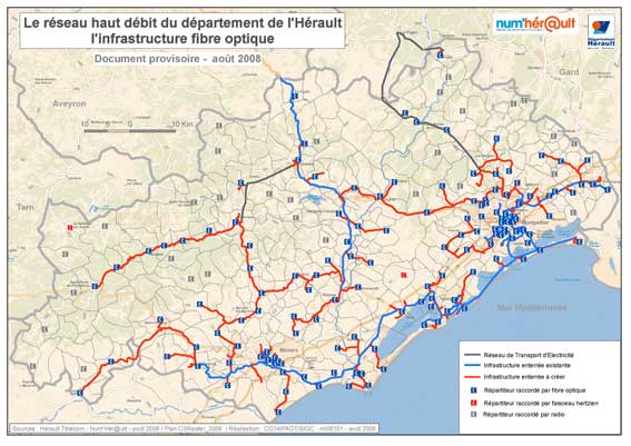 Le déploiement de ce réseau Num'Hér@ult se déroule en trois grandes phases. La construction du réseau a débuté en mai 2008 et s'échelonnera jusqu'à fin août 2009. Une partie du réseau est d'ores et déjà opérationnelle. On recense en effet à ce jour 456 km de fourreaux mobilisables pour déployer les infrastructures. « Au fur et à mesure du déploiement, le délégataire proposera aux opérateurs de s'appuyer sur son réseau pour qu'ils commercialisent leurs services aux particuliers et aux entreprises. La mise en service des offres d'accès DSL est prévue d'ici août 2009 », explique Claire Leroy de la cellule Tic (technologies de l'information et de la communication) du Département ; pour les autres communes couvertes par la radio, ce sera finalisé au 2 e semestre 2009 ».
