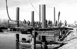 Pour ce nouveau quai de 450 m de long au total, 140 pieux soutenant la dalle du quai sont venus d'Istanbul. Les pieux impressionnants, de 25 m de long. Les élus assistent à un ancrage, sur du terrain plus dur.